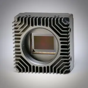The NSV-571 camera integrates a Sony IMX571 sensor with a GMSL2 power-over-coax interface. The 28.3 mm 1.5:1 imager operates at 6.8 FPS in 16-bit mode. Region of interest modes support smaller captures at up to 100 FPS.